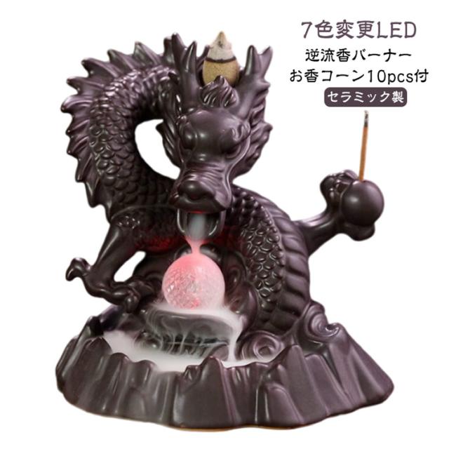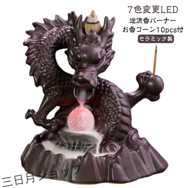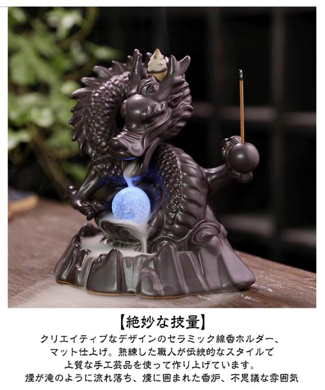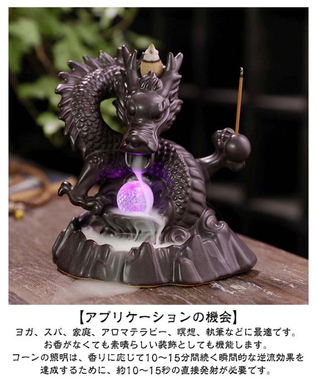 led お香立て 線香立て 龍 お坊さん 香のバーナー リラックス 逆流香バーナー 仏教 古典 癒し 置物 インテリア 香炉仏 香り 逆流 瞑想 倒流香 お香 アジアンテイスト 家の装飾 風流 おしゃれ 【お香コーン10pcs付】 癒し 香り 匂い 自粛 幻想 陶器 プレゼント 贈り物