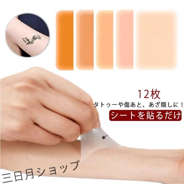 タトゥー隠し ファンデーション あざ 傷あと 12枚入り 大判 しっかり隠す スキンカバーシート ウォータープルーフ 0.02mm テープ タトゥー隠し シート