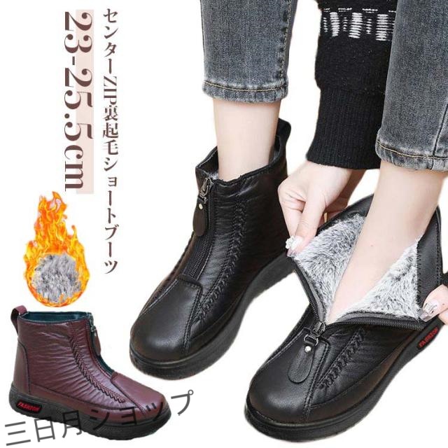 センタージップブーツ 靴 ブーツ 裏起毛 ショートブーツ ショート丈 ウィンターブーツ ウィンターブーツ 防寒 ボア あたたかい 歩きやすい 柔らかい スノーブーツ 保温 ローヒール