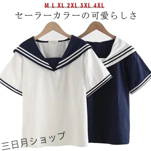 tシャツ ブラウス ゆったり 半袖 シャツ 無地 レディース シャツブラウス 半袖 大きいサイズ セーラーカラー 春 カジュアル 夏 シンプル トップス プルオーバー 着やすい 学生 ガーリー 高校生 通学 夏服 ネイビー