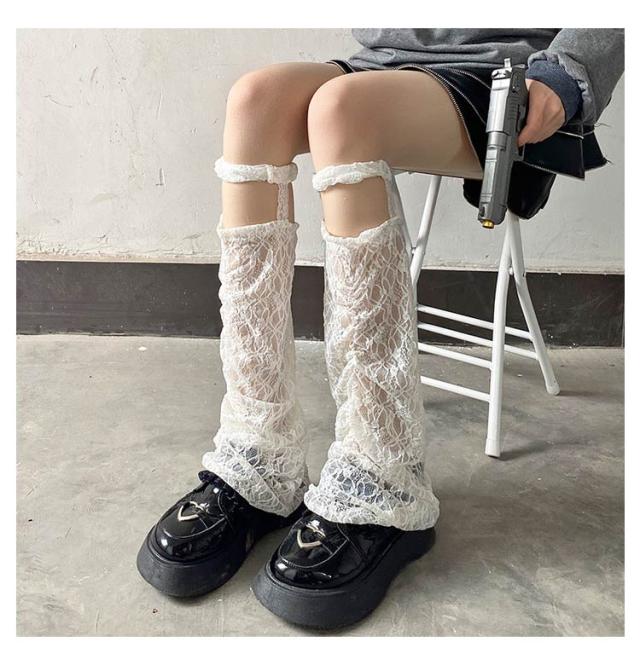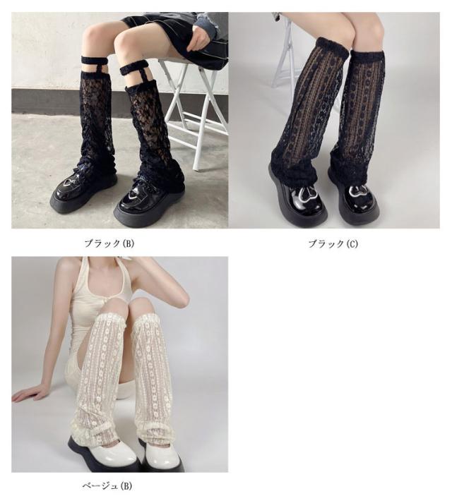 | ミニ丈のスカートやパンツなど着用時にさみしい足元を上品にカバー。 総レースで仕上げていますので、お洋服の邪魔をせずに足元を綺麗にカバーし、またかわいく魅せてくれます。 | |