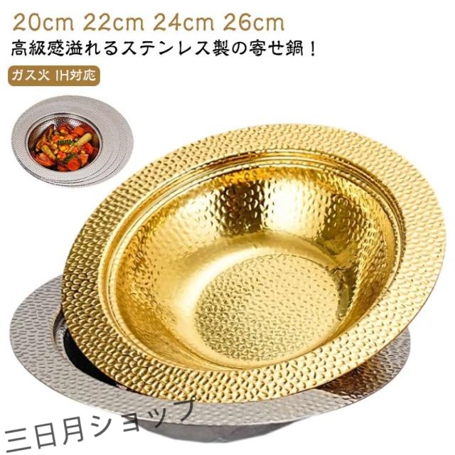しゃぶしゃぶ用 ステンレス ガス火 槌目 IH対応 皿 しゃぶ鍋 鍋 サラダボウル 厚手 食器 しゃぶ鍋 そうめん鉢 しゃぶしゃぶ鍋 サラダボール なべ 麺鉢 うどん鉢 寄せ鍋 冷麺 キッチン用品 20/22/24/26センチ
