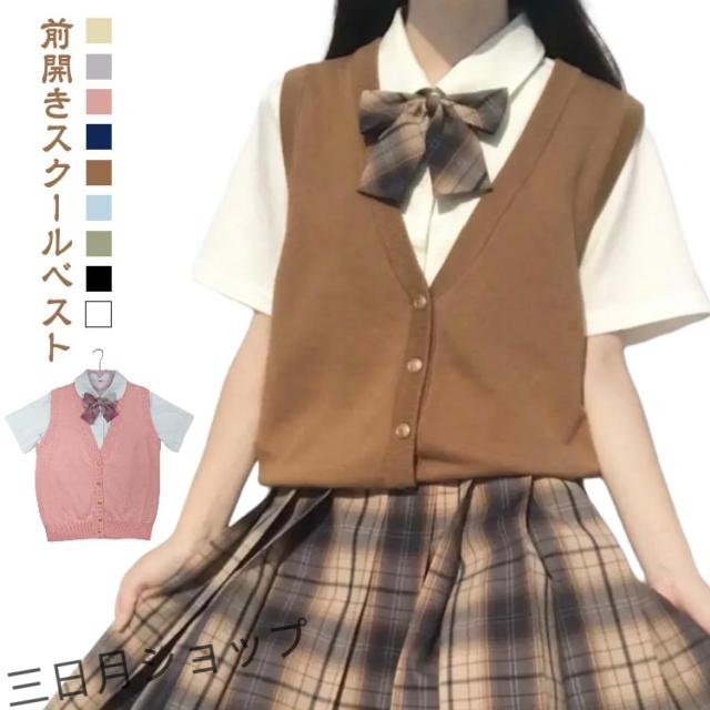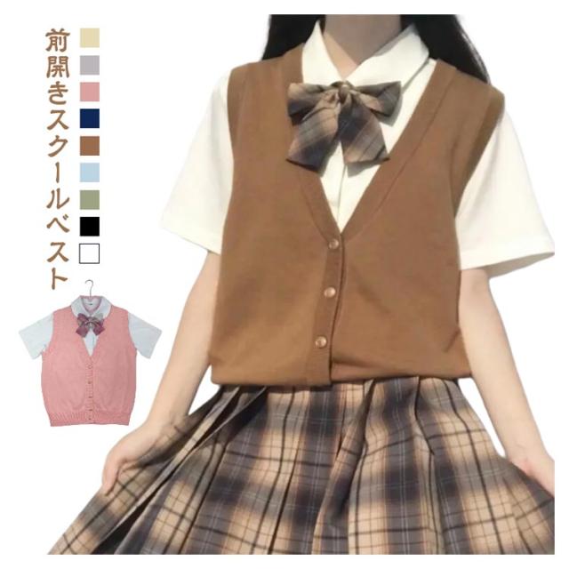 前開き JK ニット ベスト シンプル スクールベスト Vネック 学生 セーター 無地 薄手 スクール 制服 女子 通学 春 中学 制服ベスト ニットベスト 夏 女子高生 秋 ベスト レディース ニットベスト かわいい チョッキ 春 ベージュ グレー