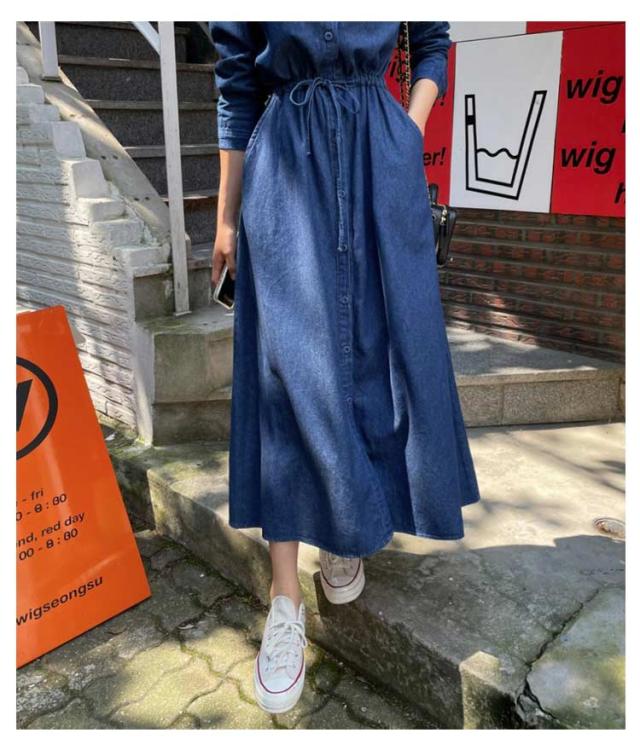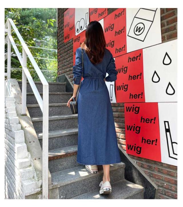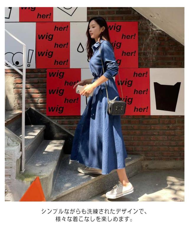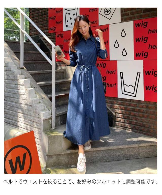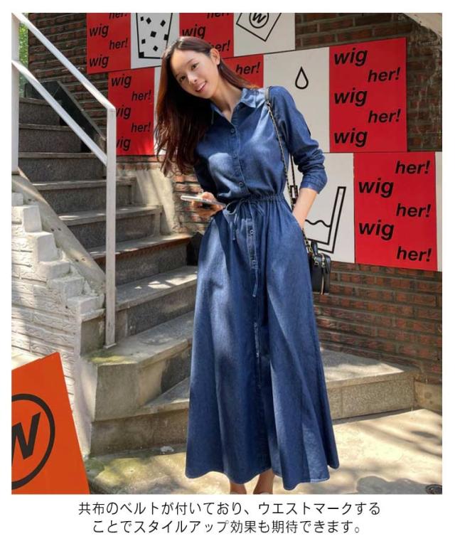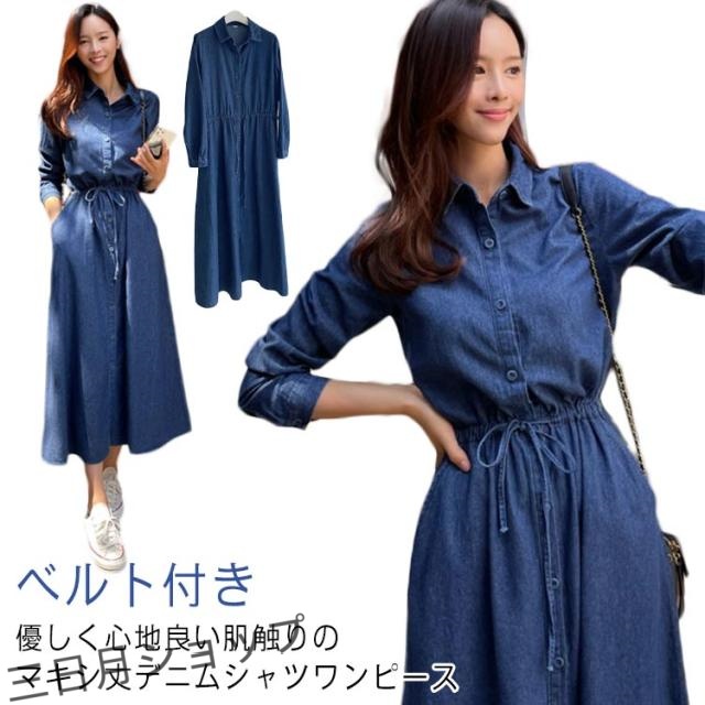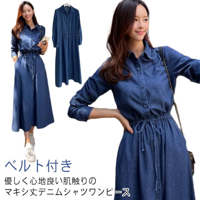 長袖ワンピース デニムワンピース 長袖 ロングワンピース デニム きれいめ シャツワンピース デニムシャツ ベルト付き ロング丈 レディース 春 秋 冬 ワンピース 薄手 襟付き 大人 カジュアル 30代 40代 50代 フレアワンピ aラインワンピ デニムワンピ アメカジ