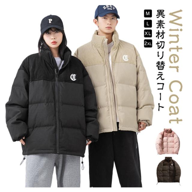 コート ート 刺繍入り コート 中綿入り 秋冬 ユニセックス 異素材 男女兼用 コーデュロイ メンズ ミリタリーコート コーデュロイ 防寒コート コーデュロイ 中綿コート 中綿ジャケット 暖かい 中綿 コート ショート丈 中綿アウター 切り替え 通勤 通学 軽量 冬 アウター