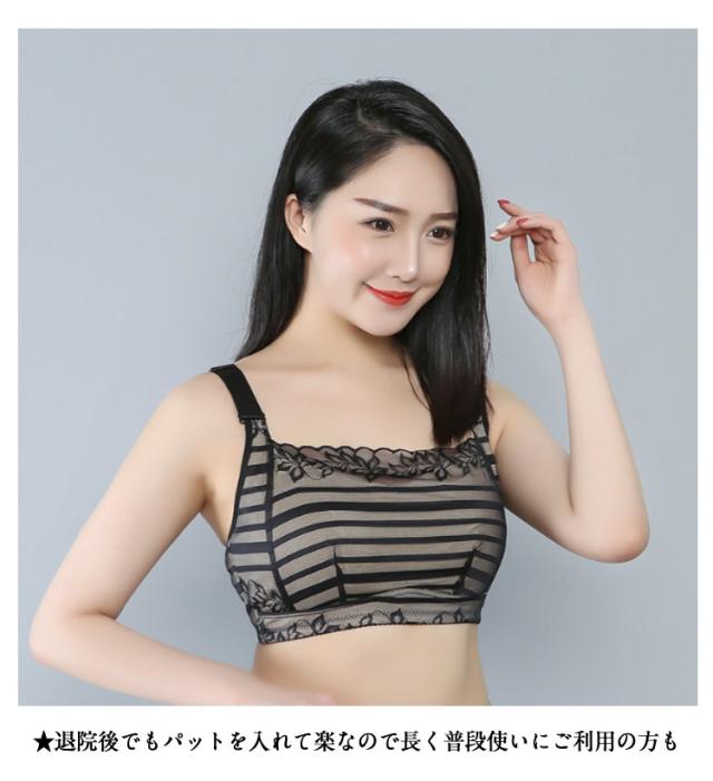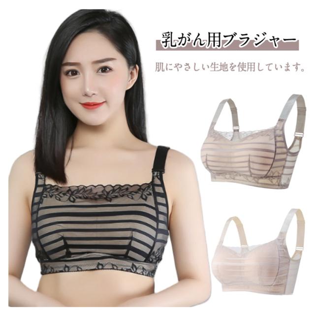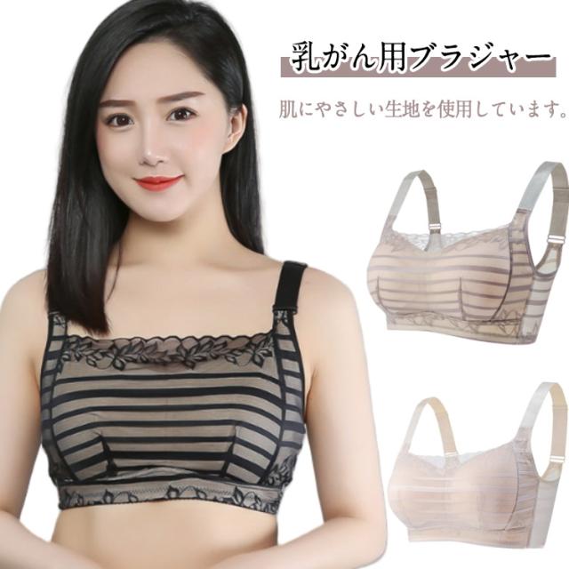 乳がん ブラジャー 乳がん専用 ブラ ストライプ 乳がんブラジャー 乳癌 全摘 用 ブラジャー ノンワイヤー ブラジャー ノンワイヤーブラ 手術 術後 下着 綿 レース 乳癌 綿混 対応 乳がん パット 全摘用 対応 胸パッド 補正下着 送料無料