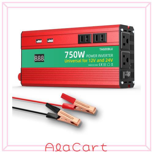 TAGEEBLU 750W DC 12V/24VをAC100Vに 変換, カーインバーター, カーチャージャー 車 コンセント 12V車 & 24Vトラック 対応 4 ACコンセン