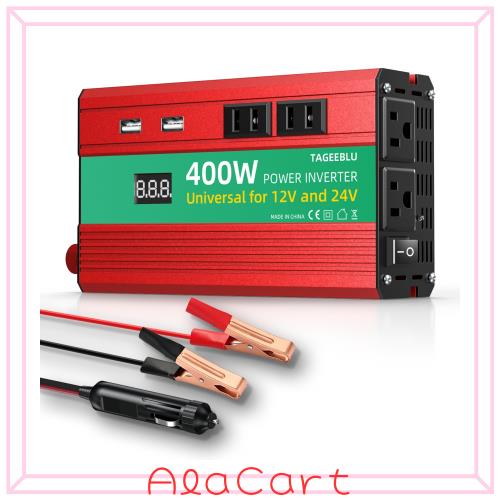 TAGEEBLU 400W DC 12V/24VをAC100Vに 変換, カーインバーター, カーチャージャー 車 コンセント 12V車 & 24Vトラック 対応 4 ACコンセン