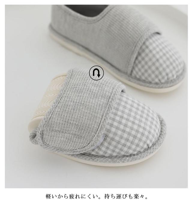 | 【23-25cm】 室内履きルームシューズとしてお家でのリラックスタイムに最適です。 妊娠中、産後の室内用。底面は滑り止め衝撃吸収ソールとなっています。 軽いから疲れにくい。持ち運びも楽々。 長時間、履いていても指が痛くなりにくい。 かかと×マジックテープ付き入院や介護にも安心。 リビング用やキッチン、トイレなどのおうち用としてや、介護・リハビリや入院用のルームシューズ。 | |