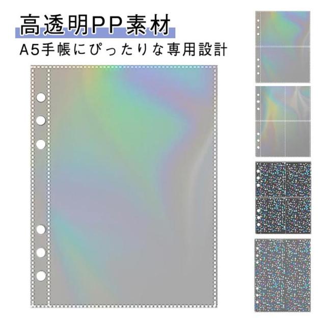 50枚セット A5 サイズ リフィル 透明 ハート ホログラム 虹色 帳 リフィル 台紙 6穴 剥離紙 はがせる バインダー A5サイズ 135×193mm 135×92mm 66×92mm 送料無料