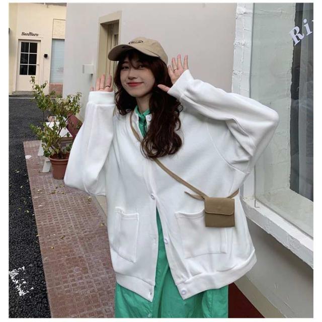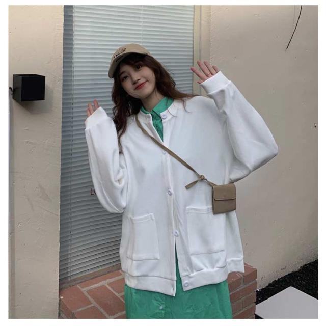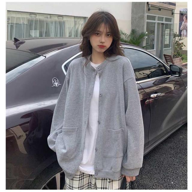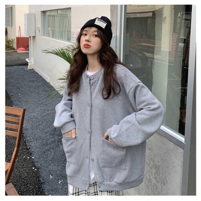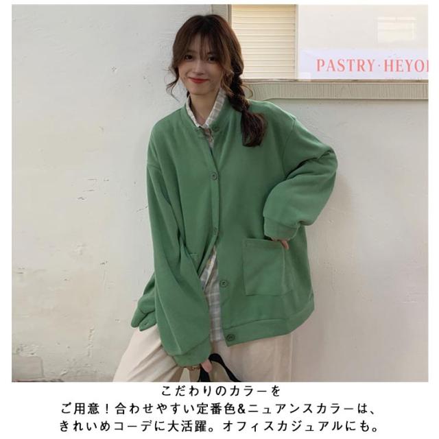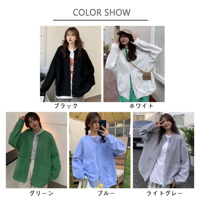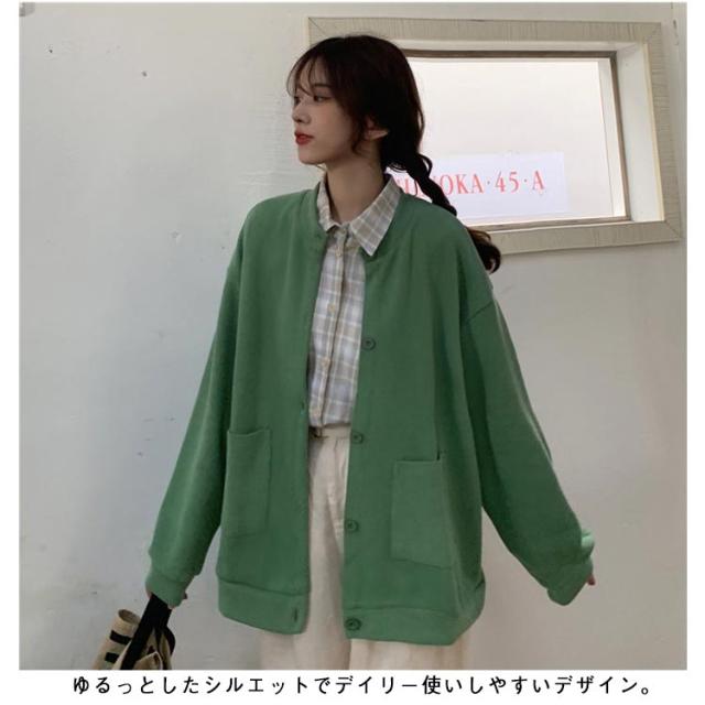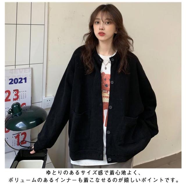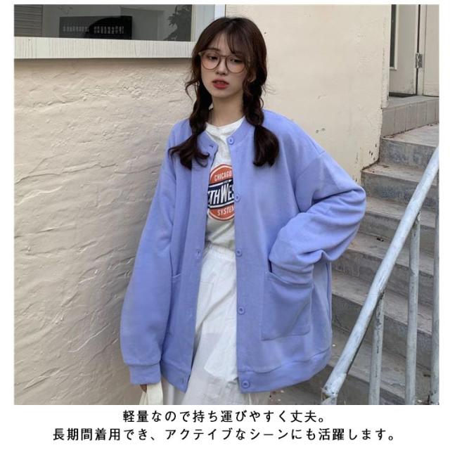 ブルゾン レディース 長袖 秋アウター カーディガン 春秋 アウター 無地 スタジャン ノーカラー ジャケット トップス ジャンパー クルーネック ライトアウター 前開き 羽織り シンプル カジュアル オーバーサイズ おしゃれ 秋服 ブラック 春 秋