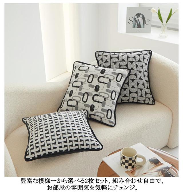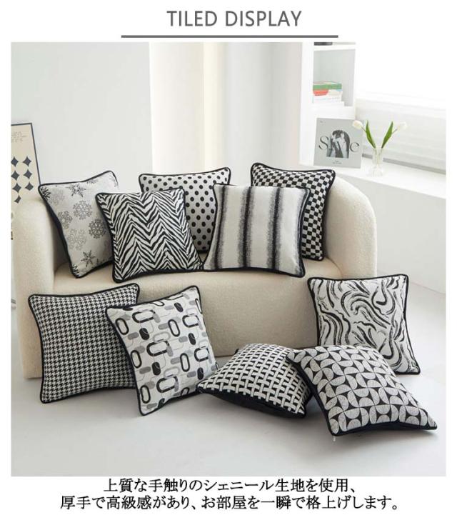【選べる2枚セット】 高級感 クッションカバー 45×45cm シェニール 厚手 毛玉が起きない 洗える 北欧 モノトーン おしゃれ ソファ ベッド リビング クッション 模様替え 新生活 オシャレ ドット柄 チェック柄 ゼブラ 送料無料