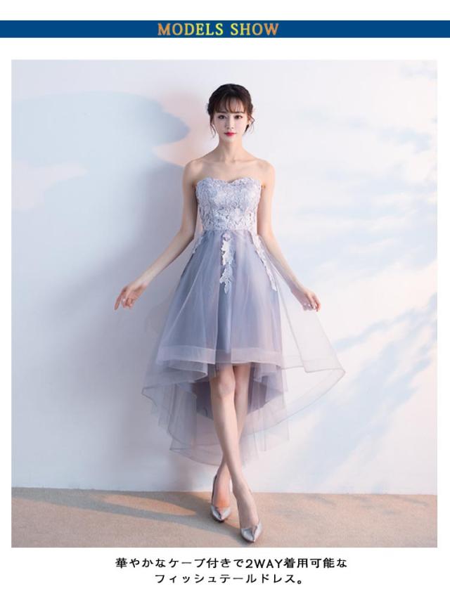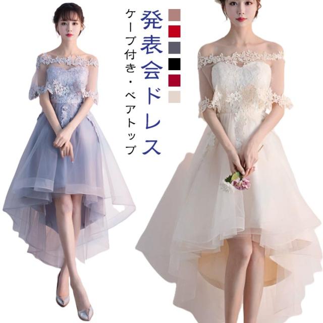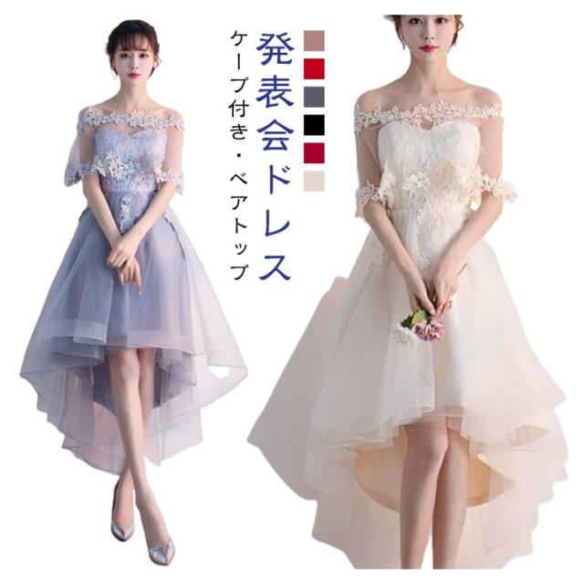 カクテルドレス パーティードレス ケープ付き フィッシュテール 膝丈 Aライン オフショルダー ベアトップ 編み上げ シースルー 大きいサイズ 赤 黒 結婚式 二次会 演奏会 発表会 お呼ばれ dress 上品 エレガント ピンク レッド グレー ブラック ワインレッド シャンパン