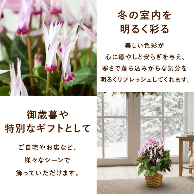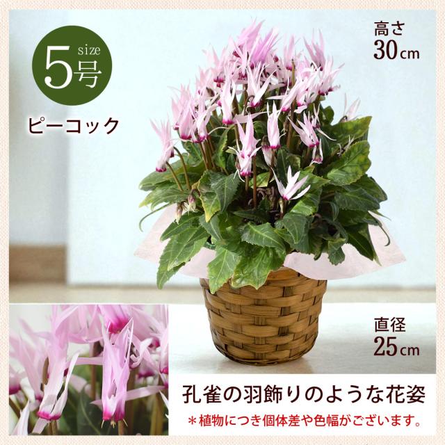 鉢植え シクラメン ピーコック 5号鉢 バスケット付 お歳暮 ギフト 花 おしゃれ 花鉢 冬 鉢植え 花鉢 鉢花 クリスマス 誕生日 プレゼント 女性 母 祖母 フラワーギフト お祝い 冬ギフト ウィンターギフト 冬 ※寒冷地お届け不可【12月6日〜12月25日のお届け】 送料無料