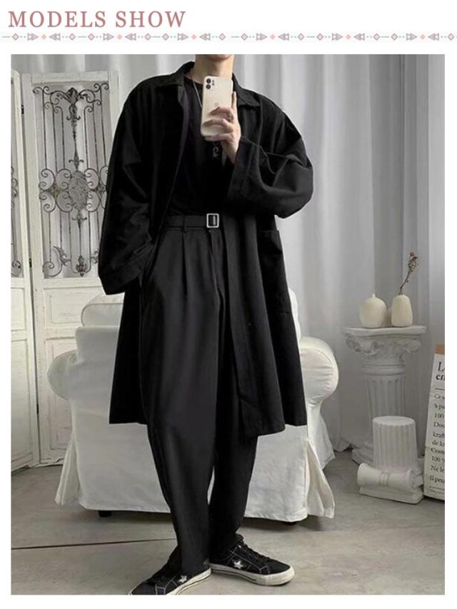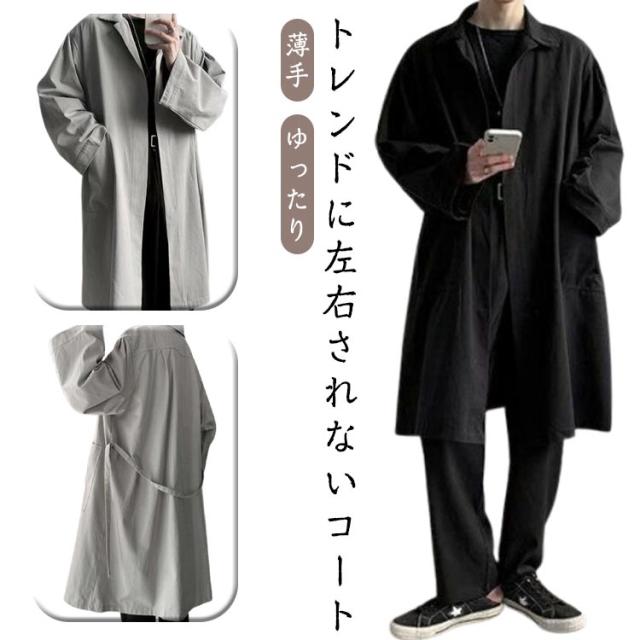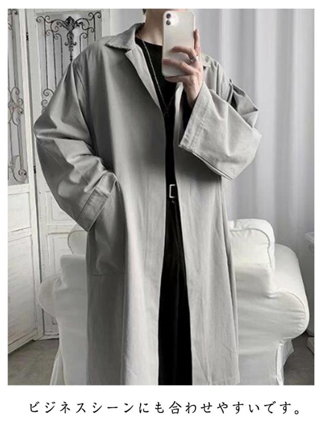 秋物 ハーフコート メンズ 裏地付き ミドル丈 ゆったり 薄手 ライトアウター トレンチコート オーバーサイズ メンズ ステンカラーコート カジュアル 春 秋 冬 アウター シンプル 大きいサイズ
