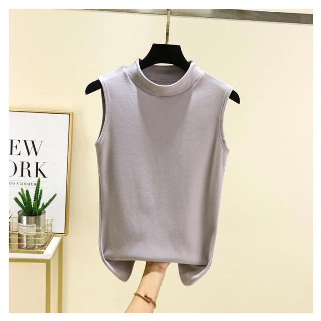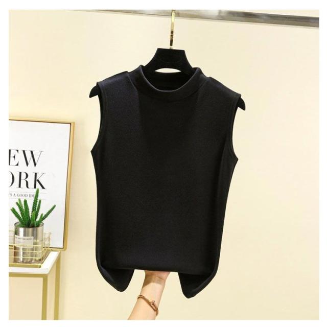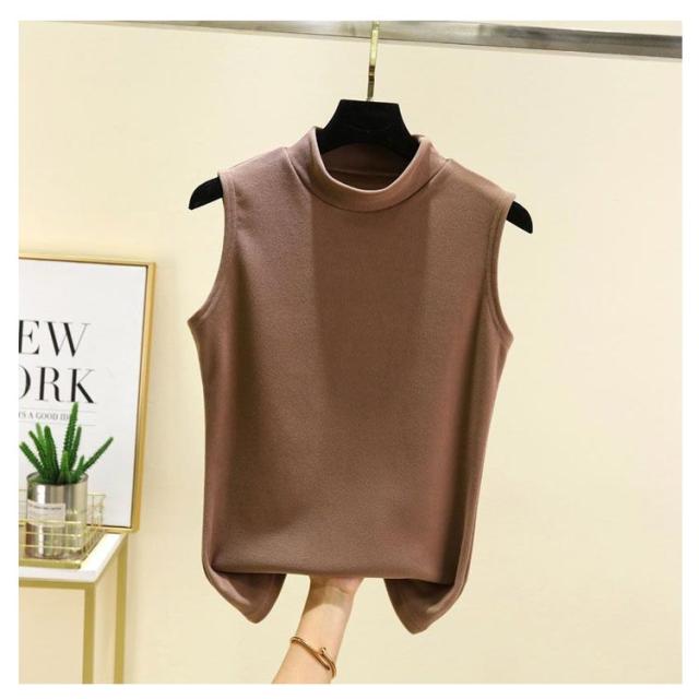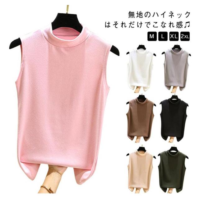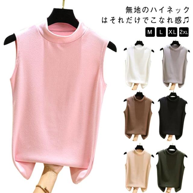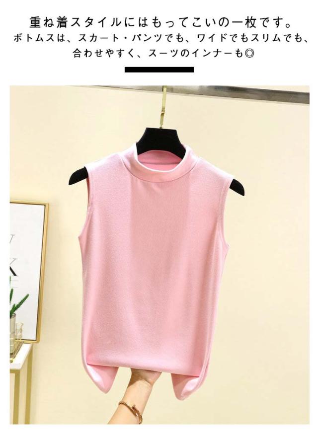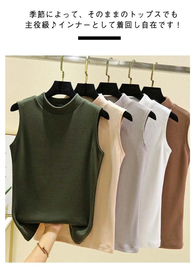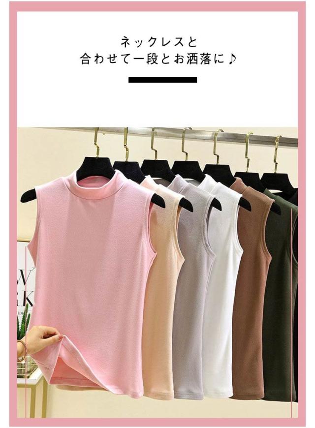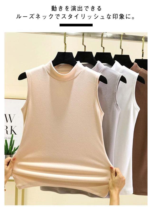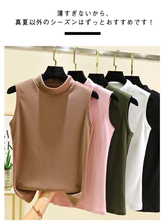 秋冬インナー トップス フィット レディース カットソー タートルネック インナー タンクトップ ノースリーブ 秋冬インナー 細身 Tシャツ レイヤード 重ね着 きれいめ カジュアル シンプル 袖なし