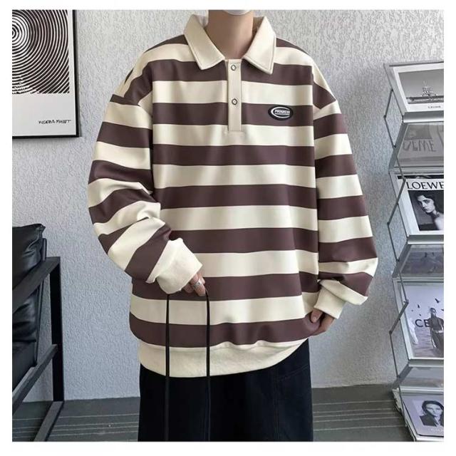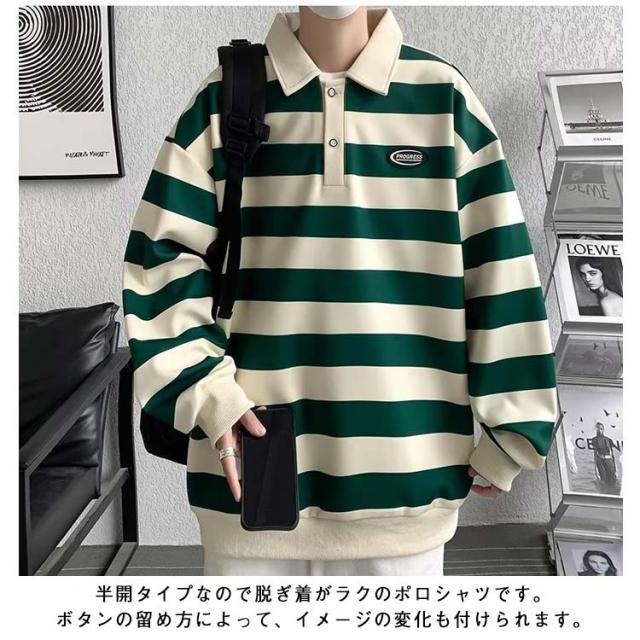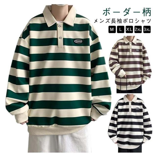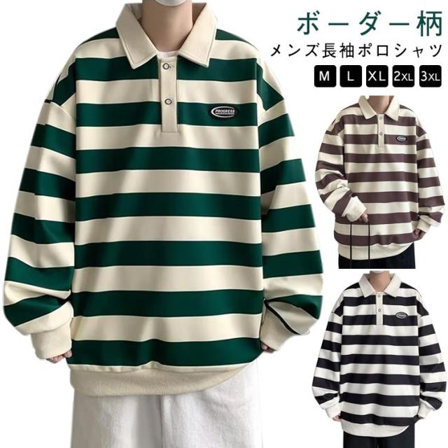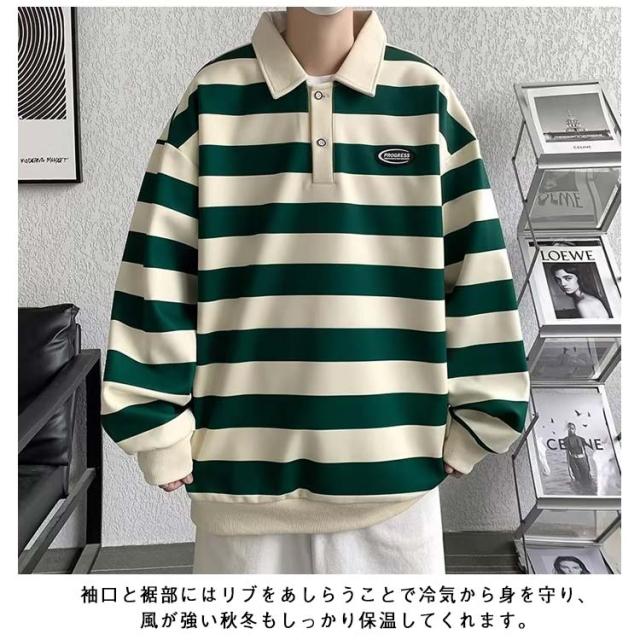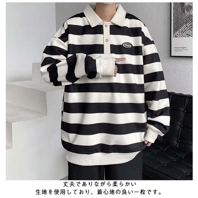 ファッション スポーツウェア メンズ オシャレ Tシャツ 大人 Tシャツ 大きいサイズ 紳士服 春秋 レトロ ストライプ 長袖 スウェットシャツ シンプル ポロシャツ 服 男性用 ユニセックス カジュアルウェア 通学 通勤