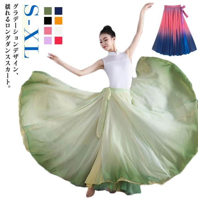 グラデーション ラップスカート フラメンコ ダンススカート S 社交ダンススカート ベリーダンス フレアスカート 広がるスカート ダンス衣装 ロングスカート ラテンダンス 大きい裾 レッスン グラデーション 練習 M L