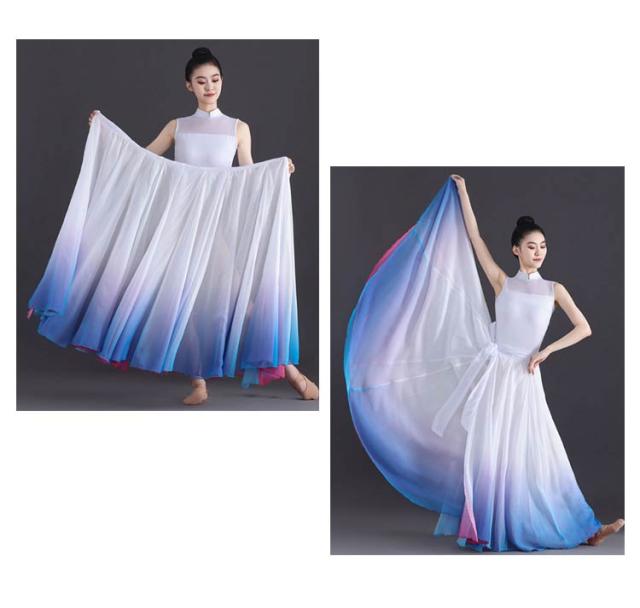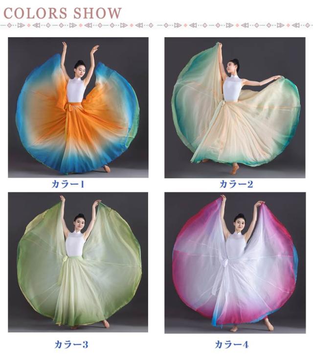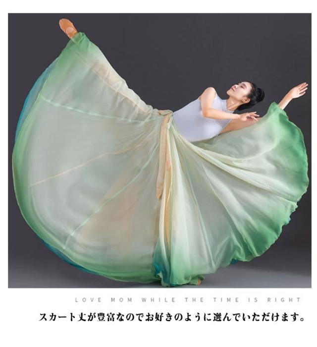 | グラデーションデザイン、揺れるロングダンススカート。 軽やかな雰囲気で足さばきラクラク、ダンス用やステージ衣装に最適。 ラップスカート仕様で楽に履き脱げます。 ふんわり広がるシルエットで優しく体型をカバーしてくれます スカート丈が豊富なのでお好きのように選んでいただけます。 | |