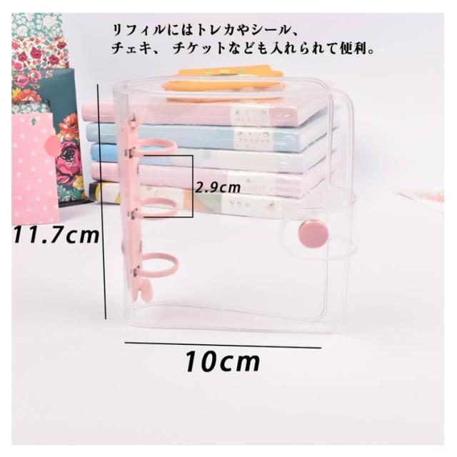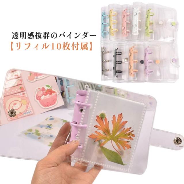 帳 リフィル10枚付属 透明 帳 コンパクト手帳 システム手帳 バインダー A8 手帳 トレカ収納 プリ帳 持ち運び アクスタケース 手帳型 かわいい 推し カラー ファイル カスタマイズ手帳 推し活グッズ