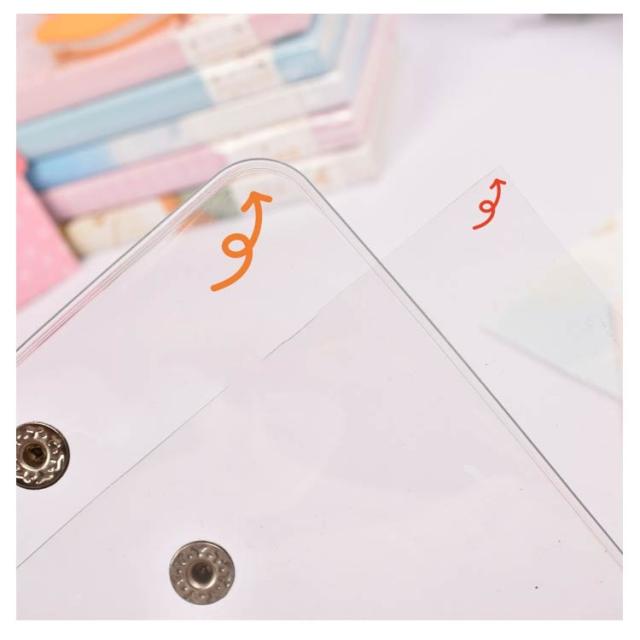 | 透明感抜群のバインダー 【リフィル10枚付属】 クリア素材の手帳で、自分だけのオリジナルデコレーションが楽しめます。 透明のリフィルが20枚付属。透明だから収納したアイテムがクリアに見えてコレクションの魅力を最大限に引き出します。 リフィルにはトレカや、チェキ、 チケットなども入れられて便利。立体などを貼って帳として活用しよう! A8サイズ!大きく広げた手にのる手のひらサイズで持ち運びにピッタリ! | |