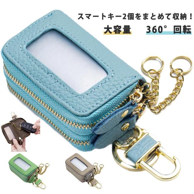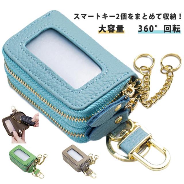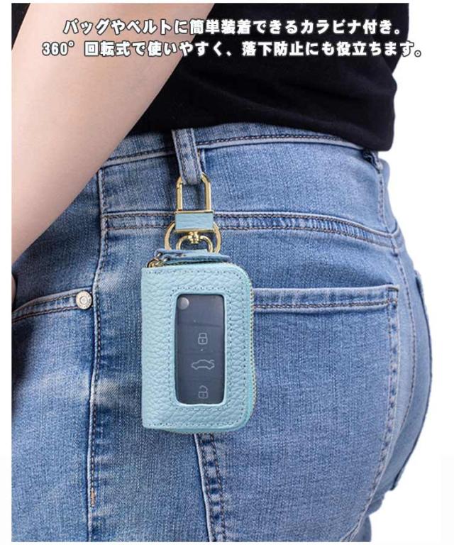 2個収納 家 透明窓付き 大容量 メンズ レディース 鍵 キーケース キーリング カラビナ付き 車 本革 キーケース 360°回転カラビナ おしゃれ スマートキーケース クリア窓 きーけーす