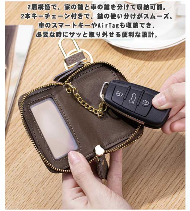 | スマートキー2個をまとめて収納! 2層構造で、家の鍵と車の鍵を分けて収納可能。2本キーチェーン付きで、鍵の使い分けがスムーズ。車のスマートキーやAirTagも収納でき、必要な時にサッと取り外せる便利な設計。 上質な本革を使用し、メンズ・レディース問わず持てるシンプル&おしゃれなデザイン。長く愛用できるキーケースです。 透明クリア窓からケースを開けずにボタン操作が可能。毎日の鍵の出し入れがスムーズになります。 バッグやベルトに簡単装着できるカラビナ付き。360°回転式で使いやすく、落下防止にも役立ちます。 スマートキーや家の鍵、カードキーまでまとめて収納可能。ビジネスシーンから旅行、アウトドアまで幅広く使えます。 | |