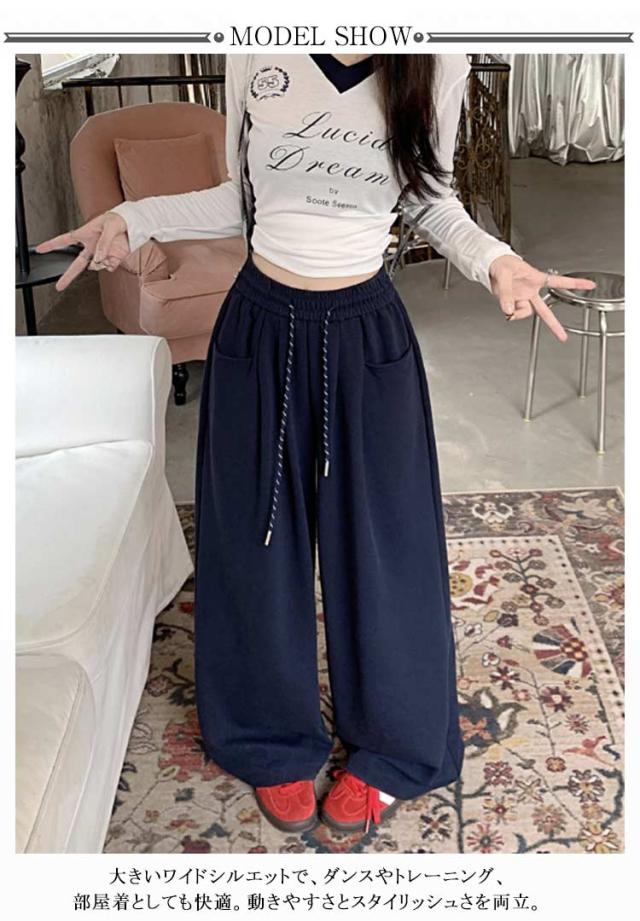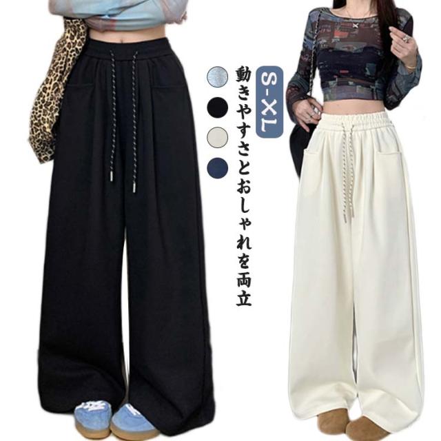 レディース スエットパンツ ワイドパンツ ダンス レディース 大きいサイズ 美脚 体型カバー 太め 部屋着 練習着 秋服 イージーパンツ ルームパンツ お出かけ 韓国風 ポケット付き