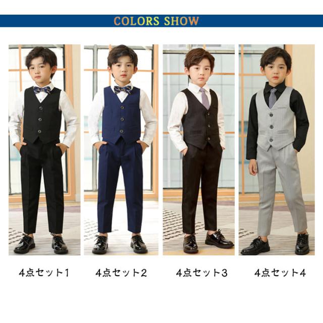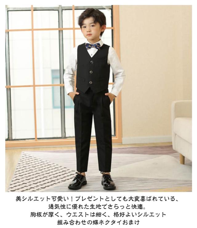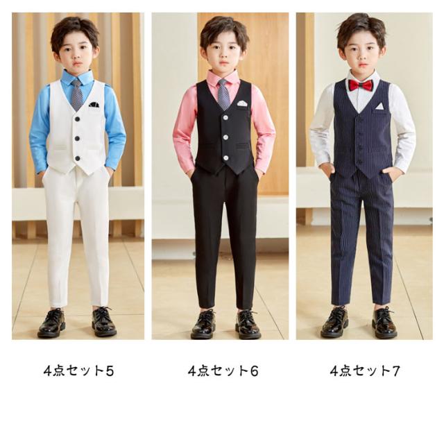 結婚式 男の子 ワイシャツ 子供 ズボン 子ども服 卒園式 お受験 タキシード フォーマルスーツ おしゃれ ベスト 発表会 100cm 90cm 120cm 130cm 140cm 150cm 男の子 170cm 160cm ベストセット 110cm 蝶ネクタイ 4点セット ベストスーツセット ワイシャツ ズボン セット