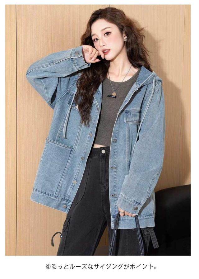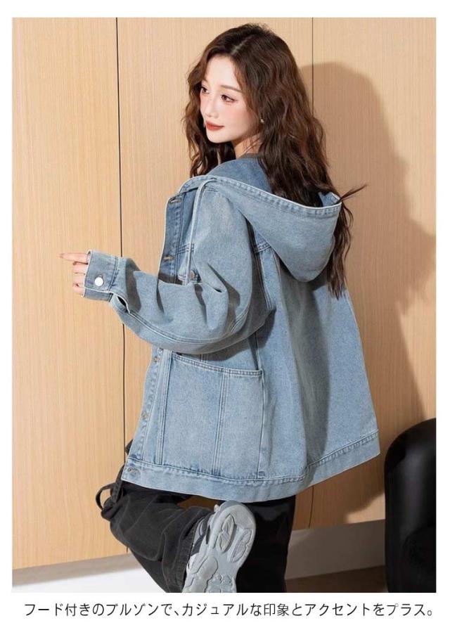 ジージャン オーバーサイズ アウター デニム パーカー Gジャン デニムジャケット 体型カバー デニム ジャケット フード付き ゆったり 50代 20代 春 30代 40代 デニムジャケット デニムジャケット 夏 秋 大人 カジュアル 通勤 通学 お出かけ シンプル 韓国風