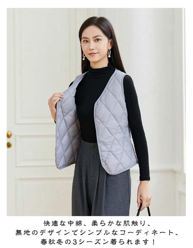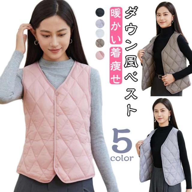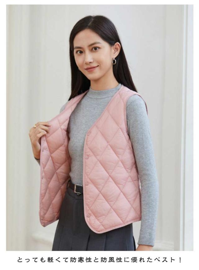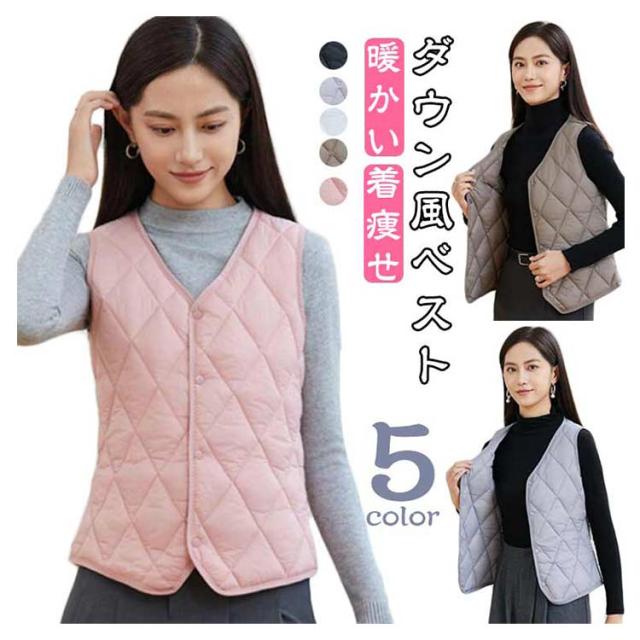 防寒 レディース 中綿ベスト Vネック インナーベスト ベスト ダウン風 軽量 ダウン風ベスト インナーベスト ダウンベストベスト 中綿 アウター ベスト ウルトラライト 暖かい 細身 防風 無地 軽量 保温 着痩せ 通勤 通学 カジュアル 秋冬