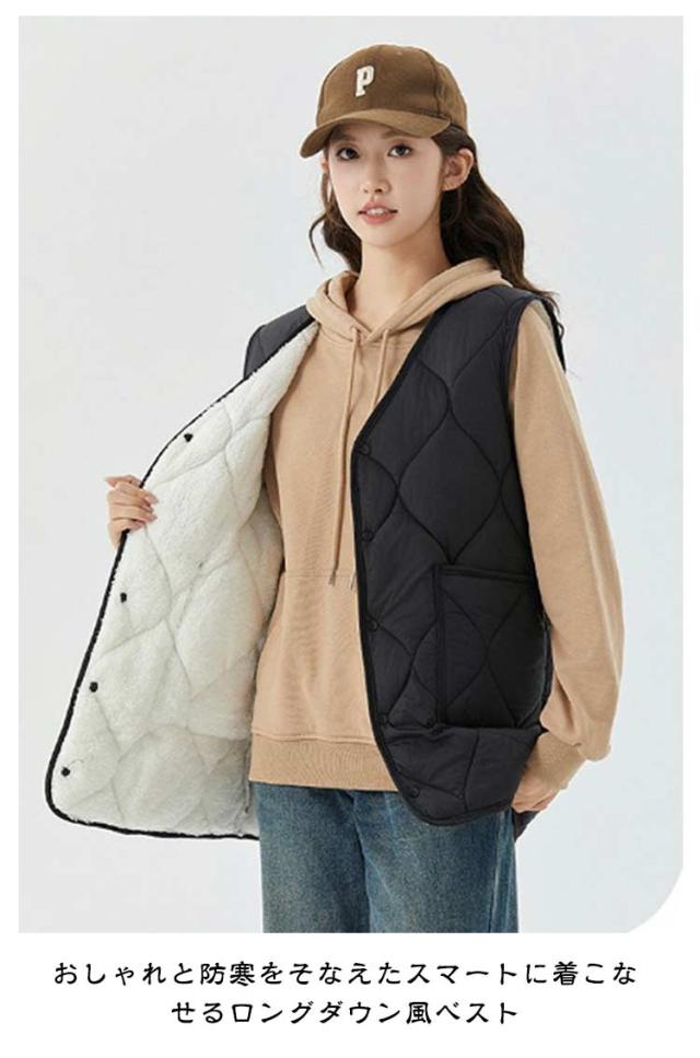 防寒着 レディース 体型カバー アウター アウトドア ロングジレ ミドル丈 フロントボタン Vネック 中綿ベスト 裏起毛 軽量 大きいサイズ ノースリーブ ダウン風インナーベスト ダウン風ベスト 暖かい 細身 キルティングベスト 着痩せ ゆったり お洒落 韓国 秋冬