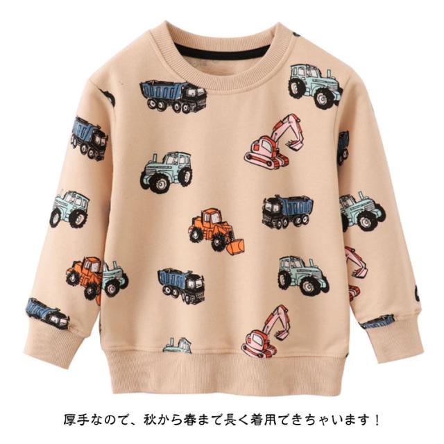 車柄 男の子 丸首 クルーネック キッズ服 トレーナー ゆったり トレーナー 通園 スウェット トップス 子供服 薄手 春秋 ベビー服 ボーイズ 通学 可愛い お洒落 長袖 90cm 100cm 110cm 120cm 130cm 140cm