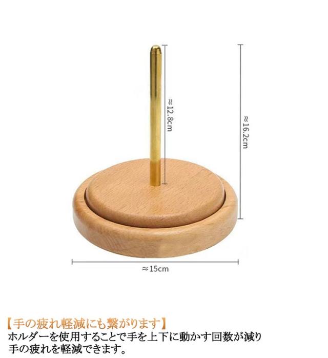 | 4タイプ選べる!ヤーンホルダー 滑らかな回転 糸ホルダー付き 【厳選された素材を採用】 職人の手で1つ1つ丁寧に仕上げられており木目は1つ1つ異なります。 【滑らかな回転】 二軸式で滑らかでスムーズな回転が実現! 使いやすく作品の仕上がりが綺麗! 【糸の管理ができるホルダー付き】 糸を玉棒に差し込みだけですぐに使え糸の管理もできてストレスなく編み物ができます。 【ぶな素材】 滑らかな表面で丈夫で耐久性に優れ長期使用にも◎ 天然の木材を採用しているので1つ1つデザイン・木目が違います! 【いつもの作業がよりスムーズに】 ホルダーを使うことでいつもの手作業スピードよりもスピードアップが期待できかつ丁寧に綺麗な仕上がりが実現します。 【手の疲れ軽減にも繋がります】 ホルダーを使用することで手を上下に動かす回数が減り手の疲れを軽減できます。 【4種類のデザイン】 シンプルな丸型からかわいくてキュートなデザインのクマ柄まで4種類のデザインがあります! 【丸みのある先端】 毛糸玉棒の先端は丸みのある造りで作業時の手の接触でも安心で安全です。 【スムーズな回転】 スムーズな回転が可能で作品作りが捗ります! | |
