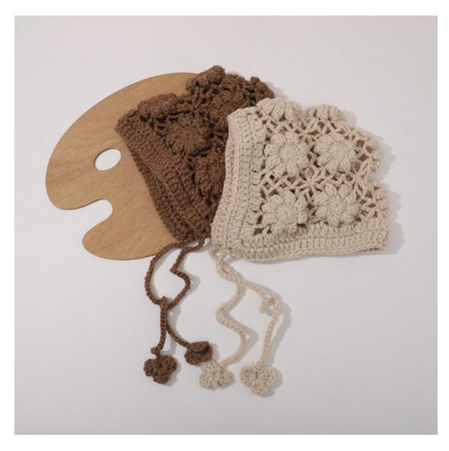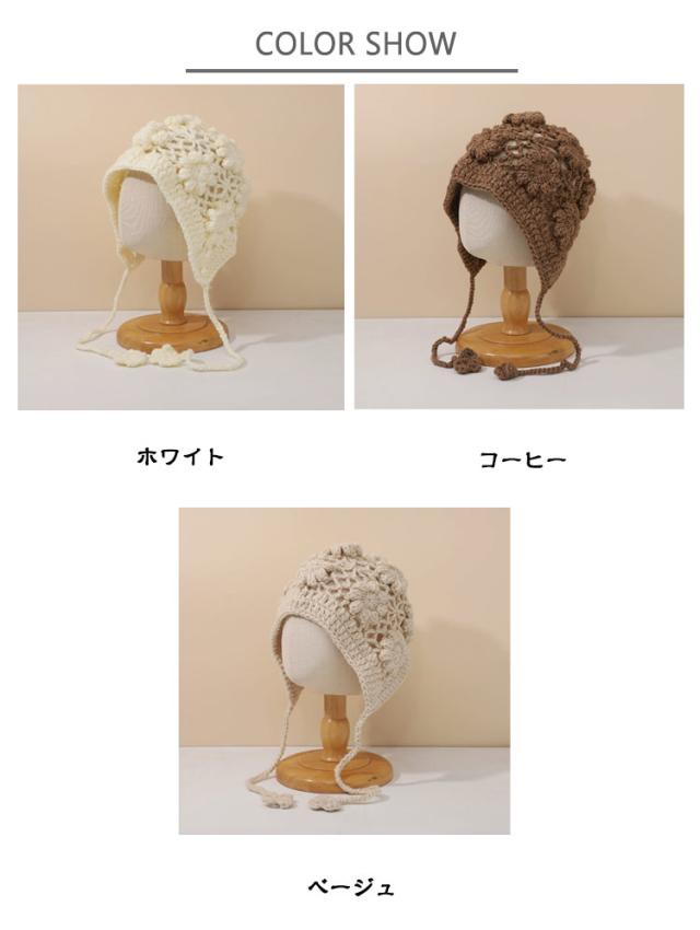 | おしゃれなニットボンネット。 透かし編みがおしゃれです。 | |