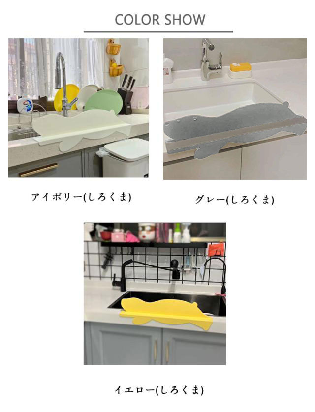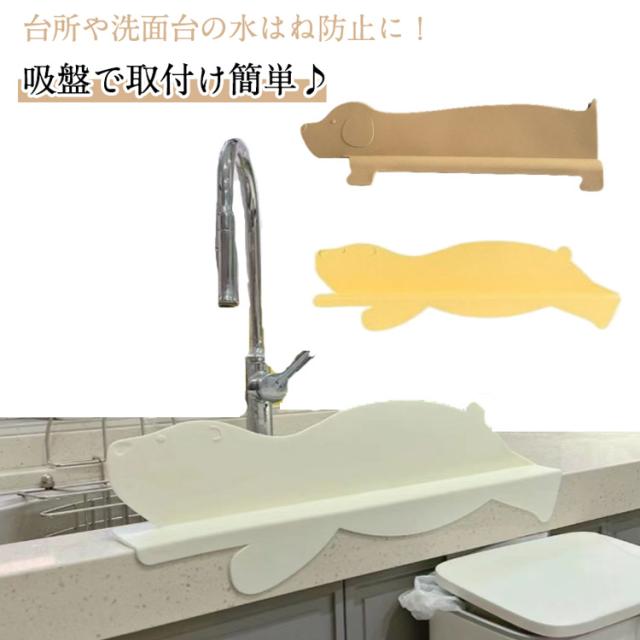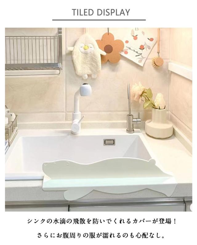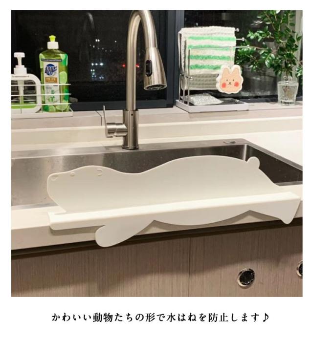 | 台所や洗面台の水はね防止に! 吸盤で取付け簡単♪ シンクの水滴の飛散を防いでくれるカバーが登場!さらにお腹周りの服が濡れるのも心配なし。 シリコン素材を採用する。手が当たっても痛くなく、サッと洗うだけで汚れが落ちる。 かわいい動物たちの形で水はねを防止します♪ | |