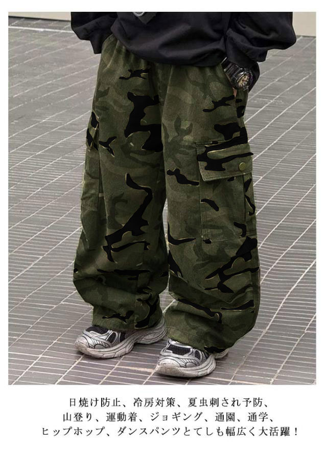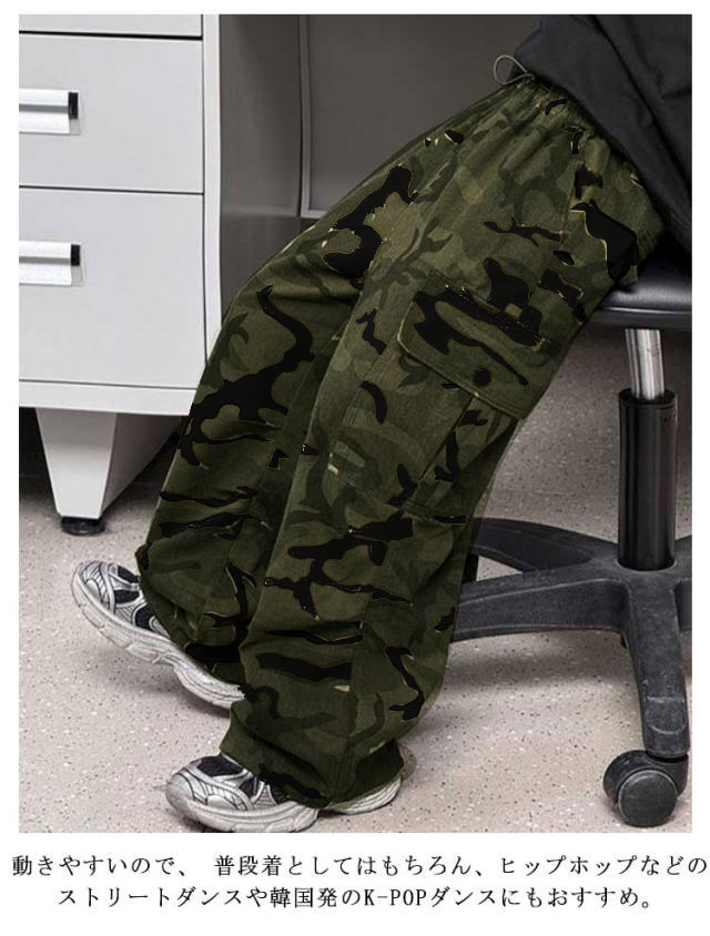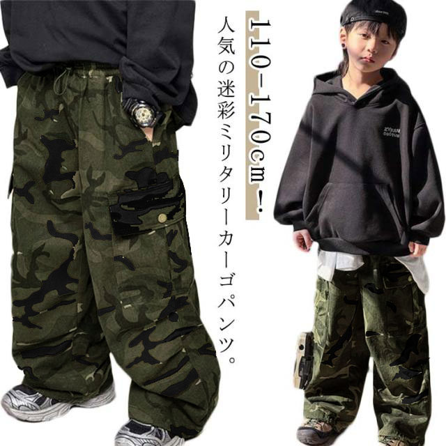 | 110-170cm!人気の迷彩ミリタリーカーゴパンツ。 ウエストは総ゴムで履きやすいです。 日焼け防止、冷房対策、夏虫刺され予防、山登り、運動着、ジョギング、通園、通学、ヒップホップ、ダンスパンツとてしも幅広く大活躍! 動きやすいので、 普段着としてはもちろん、ヒップホップなどのストリートダンスや韓国発のK-POPダンスにもおすすめ。 | |