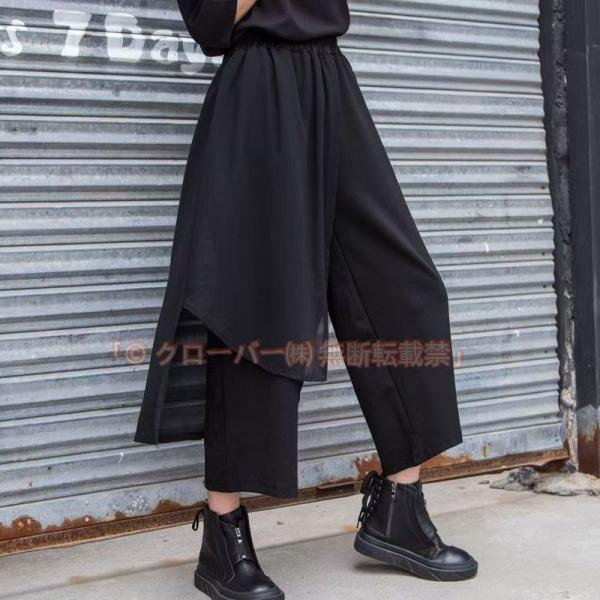 パンツ レディース ワイド 9分丈 モードファッション クロップド丈 個性的 クローバー株式会社 レース シフォン アシンメトリー 切り替え 不規則 薄手 春夏 黒 ゆったり サブカル
