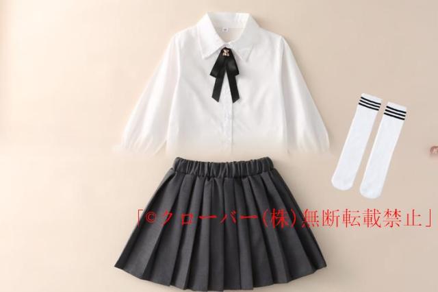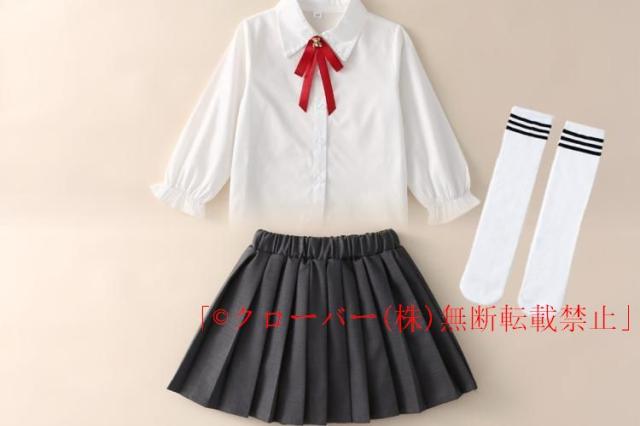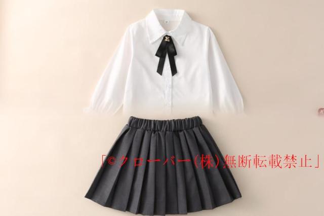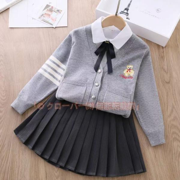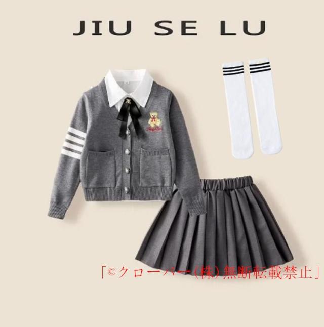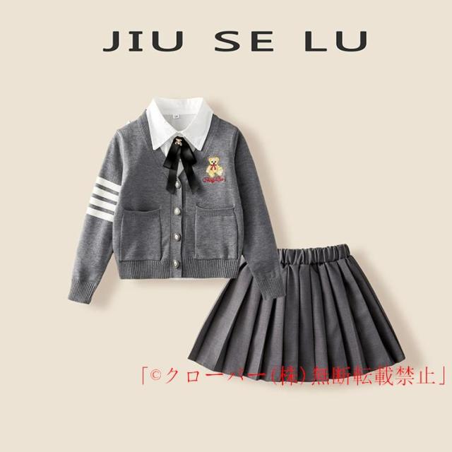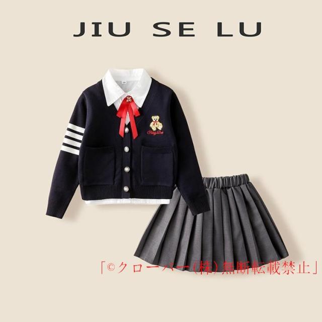 2024春新作女の子中大学生JKコーデ3点セット韓国風イギリススタイル制服セット 子供服 女児ファッション 学生服 カジュアルウェア 上下セット クローバー株式会社