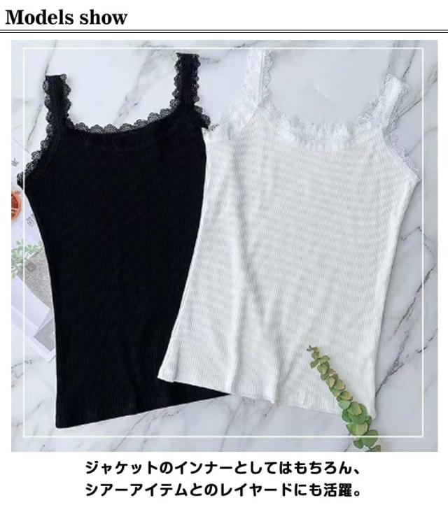 レース キャミソール インナー 肌着 リブ 薄い 綿 レディース レイヤード 下着 シンプル チラ見せ 無地 重ね着 トップス 大きいサイズ タンクトップ 女性 2枚セット オールシーズン