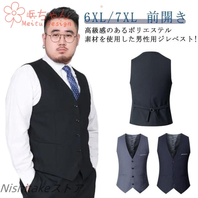 6XL?7XL!スーツ ベスト 大きいサイズ メンズ フォーマルベスト ビジネス ノーカラー 前開き 無地 七五三 結婚式 発表会 入学式 卒業式 紳士用 成人式 オーバーサイズ 理容師 二次会 謝恩会 パーティー 紺 黒 グレー ネイビー ブラック ビッグサイズ 送料無料