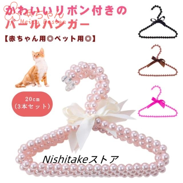 【3本入り】パール ハンガー 20cm 赤ちゃん用 ペット用 衣類ハンガー 猫服 犬服 ハンガー 犬 猫 小型犬 中型犬 小動物服 子供用 お洋服ハンガー 物干しハンガー りぼん付き おしゃれ かわいい 【送料無料】
