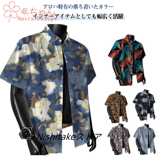 アロハシャツ 接触冷感 半袖シャツ メンズ 大きいサイズ 花柄シャツ 総柄 総柄シャツ 半袖 花柄 シャツ 夏服 アロハシャツ 夏 カジュアルシャツ ビーチ シャツ