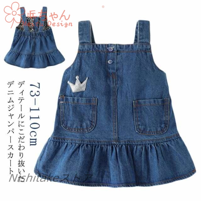 キッズ ジャンパースカート 通学 王冠 サロペット デニムワンピース 子供服 キッズ デニムスカート デニム 73 スカート 女の子 フリル 可愛い 90 100 110 ポケット付き ガールズ 通園 80 お出かけ ギフト プレゼント