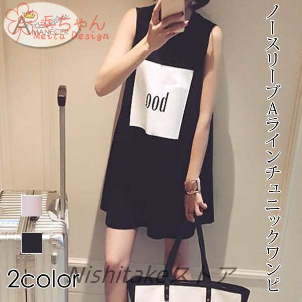 チュニック ノースリーブ ミニ丈ワンピ 英字 Aライン レディーストップス