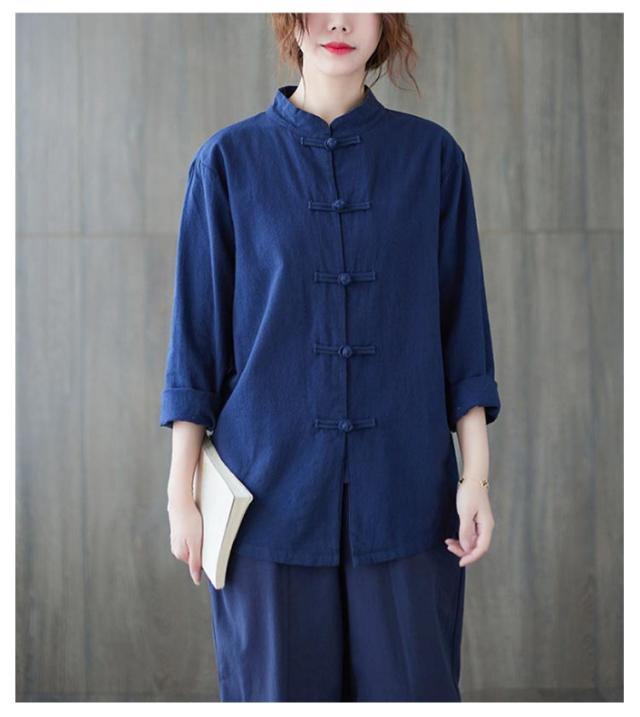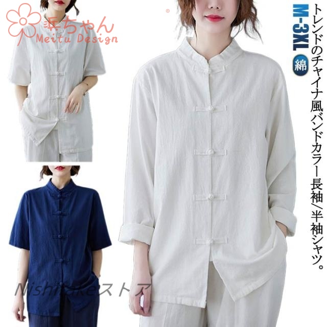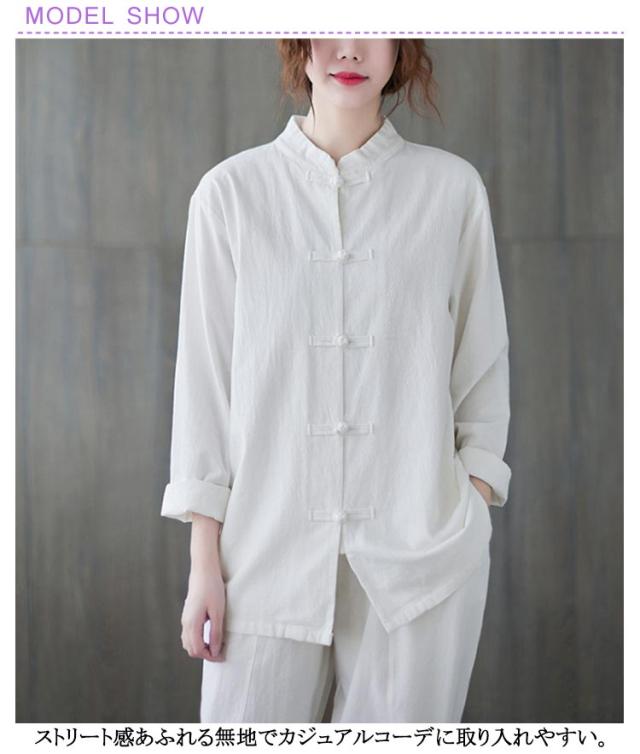 チャイナ風シャツ チャイナブラウス チャイナ風シャツ 長袖 トップス シャツブラウス ブラウス チャイナボタン 立ち襟 綿 羽織り ゆったり カジュアル おしゃれ シンプル 無地