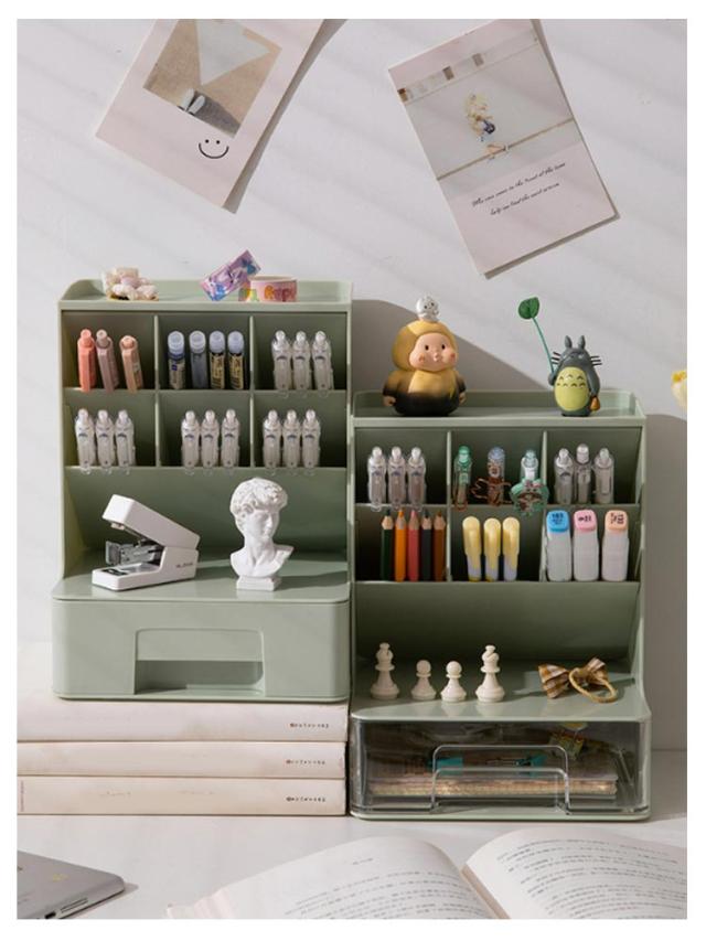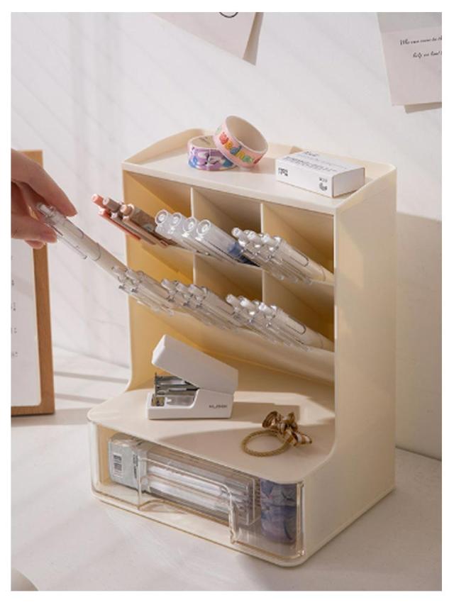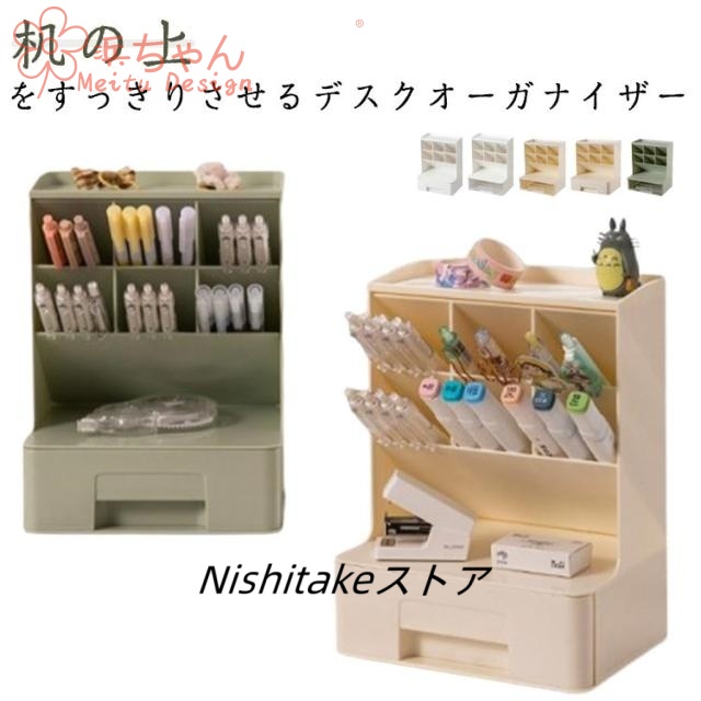 | 机の上をすっきりさせるデスクオーガナイザー 斜めに差し込むので、仕舞いやすく、取り出しやすい設計になっています。 カッターやハサミなどの収納にもおすすめです。 文房具だけでなくメイク道具の収納にもご利用いただけます。 | |