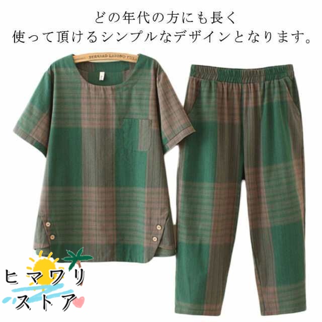【ヒマワリストア】上下セット 半袖 春夏 レディース ルームウェア シニア ギフト 寝間着 パジャマ 女性用 大きいサイズ 秋 クルーネック かわいい ルームウエア パジャマ 可愛い 部屋着 プレゼント 贈り物 敬老の日 誕生日 プレゼント 母 70代 セットアップ 婦人用 女性 ウエ
