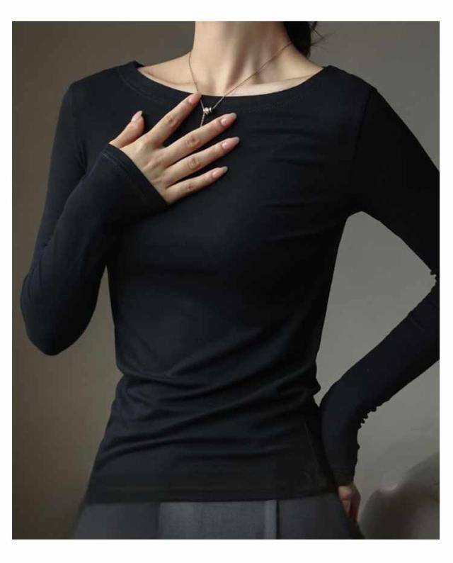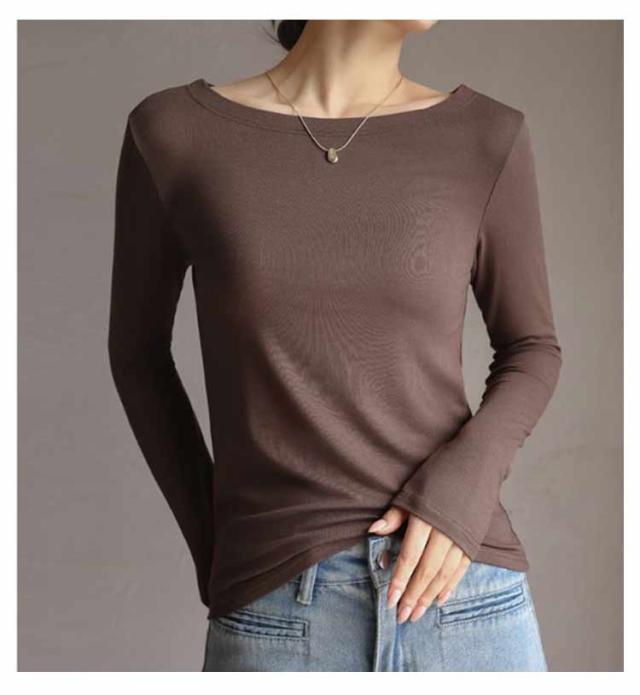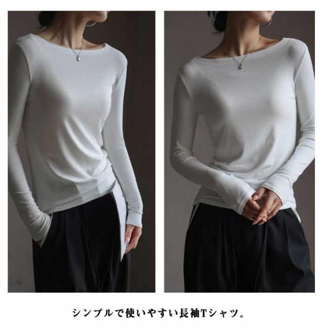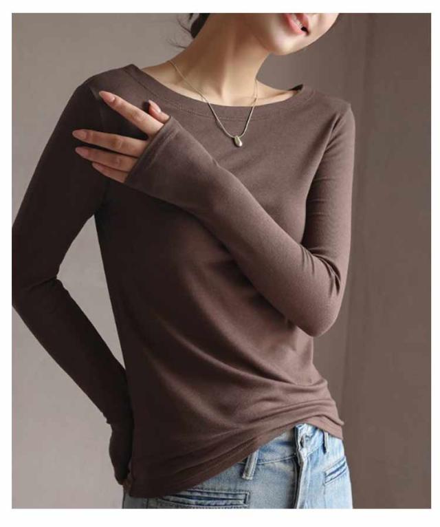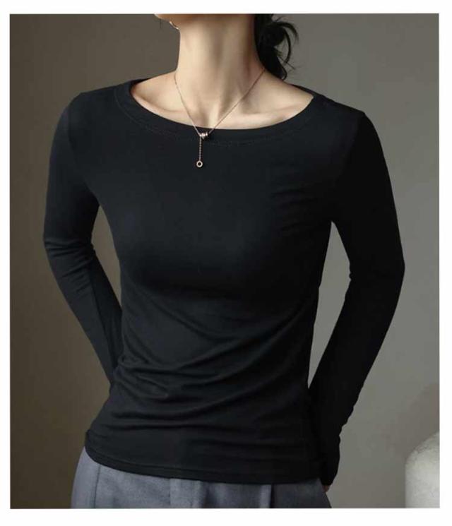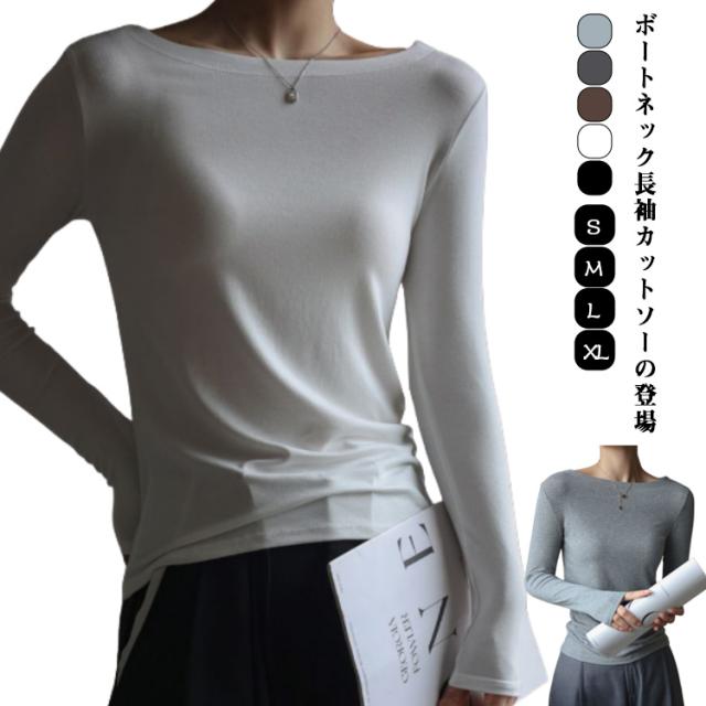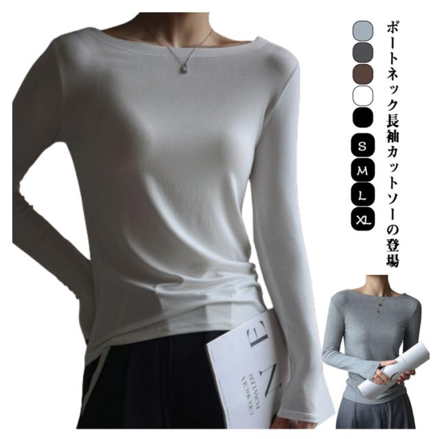 ボートネック 薄手 トップス カットソー 長袖 tシャツ プルオーバー クルーネック インナーシャツ ボートネック カットソー おしゃれ ロングTシャツ 肌触り カットソー ロンT ロンt シンプル 無地 大人 きれいめ おしゃれ 春