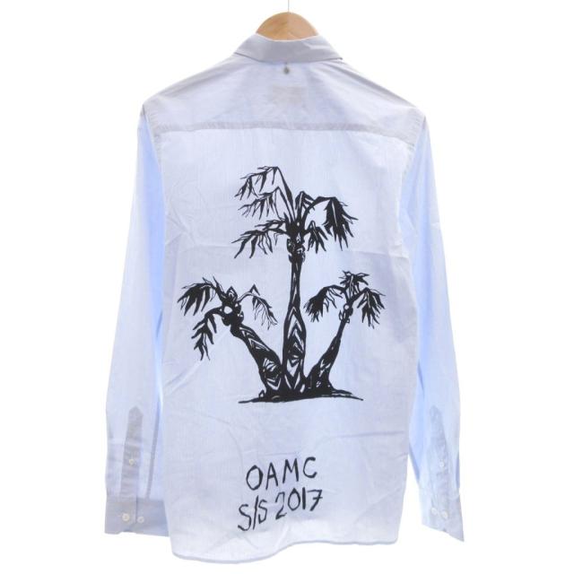 【中古】オーエーエムシー OAMC カフスシャツ 長袖 ストライプ柄 バックプリント S ライトブルー /JS ■GY42 メンズ